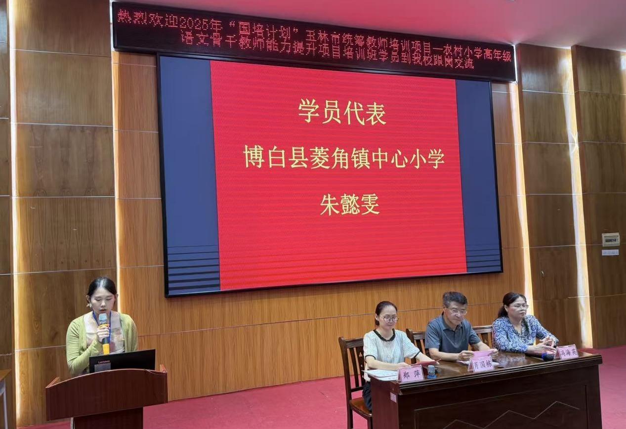 学员代表、博白县菱角镇中心小学朱懿雯老师作为参训教师代表,分享了三点研修感悟。她表示,在前4天的集中培训中,8位名师的课堂生动诠释了“教无定法”的教育智慧:郑梨花老师将复杂的教学设计拆解成清晰脉络,王传贤老师用富有感染力的朗读点亮语文课堂,王文汉老师打造出鲜活有趣的作文教学场景,李福灼老师通过独特方式解读新课标,让她深刻领悟到“教学的本质是唤醒与点燃”。其次,以学生身份重返课堂听课、参与小组讨论的经历,让她更能共情学生需求,重拾教育初心,意识到教学应多站在学生视角,用他们易懂、喜爱的方式传递知识。最后,作为农村小学教师,她明确了未来的教学方向——将大单元教学理念融入课本教学,引导学生开展整本书阅读,创新作文指导方法,把培训所学带回学校,带动更多同事共同成长,为农村教育发展注入新活力。