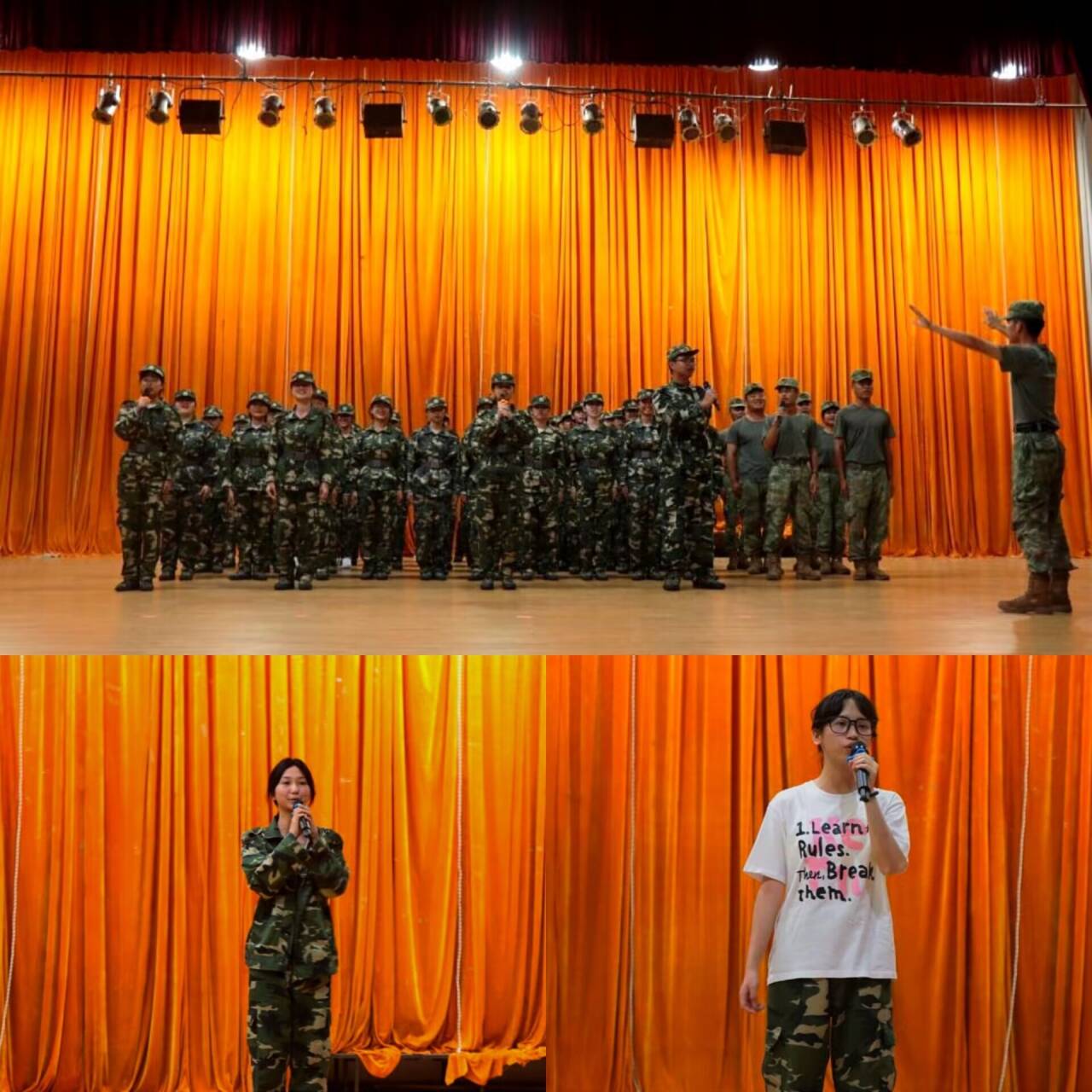 晚会中旬,气氛持续升温。汉语言文学255班与教官共同演唱的《强军战歌》,以铿锵声线传递新时代军人的使命与担当;汉语国际教育251班覃烨然带来歌曲《青花瓷》,用音符勾勒出烟雨江南的水墨意境,尽显中华传统文化韵味;汉语言文学253班赵雪然演唱的《天天》,以温暖旋律再现校园生活的陪伴与呵护。