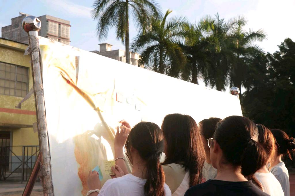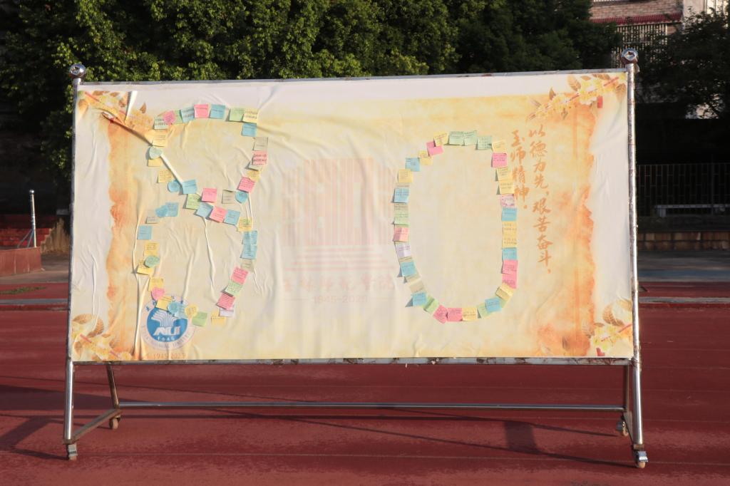 在“八秩祝福” 环节中,学生们手持便签纸写下对学校的美好祝愿,将一张张满载心意的祝福贴于展板,传递对学校的深情与期许。