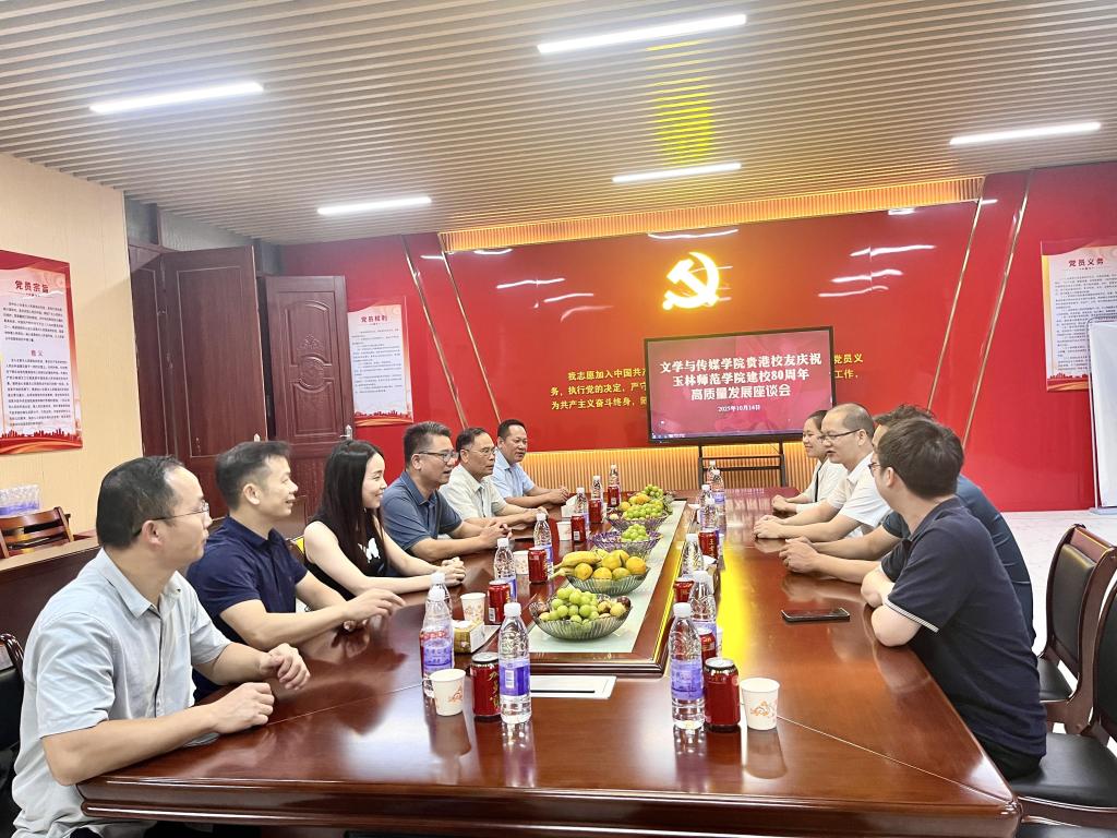本站讯 10月14日,文学与传媒学院在贵港市清北高中教育园区校区召开贵港校友庆祝学校建校80周年高质量发展座谈会。我院党委书记冯健秋,学院教师代表及贵港校友代表共同参会。