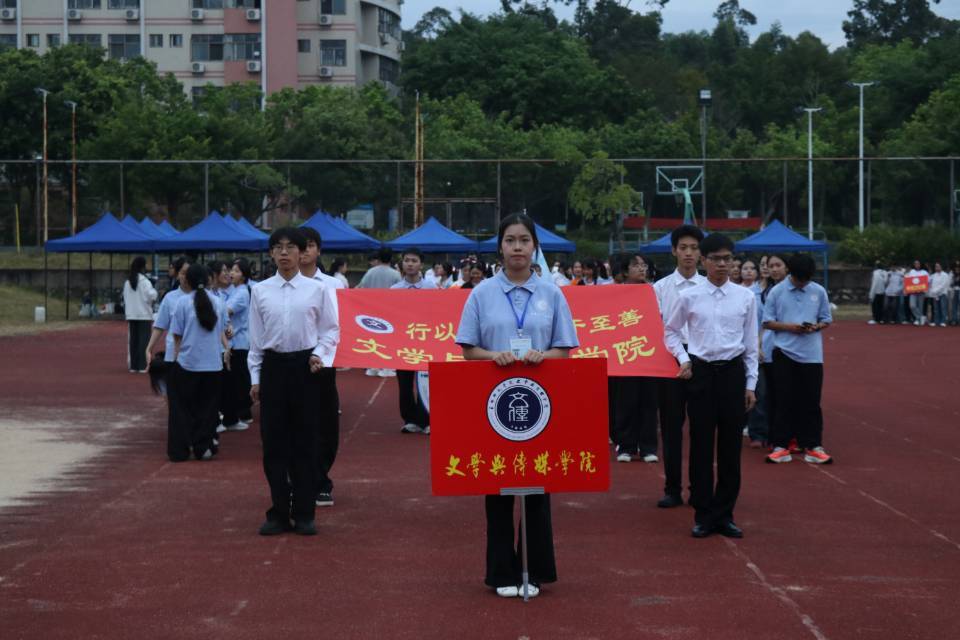 裁判员代表莫文琪、运动员代表阳健强庄严宣誓后,冯健秋宣布玉林师范学院文学与传媒学院第七届田径运动会正式开幕。