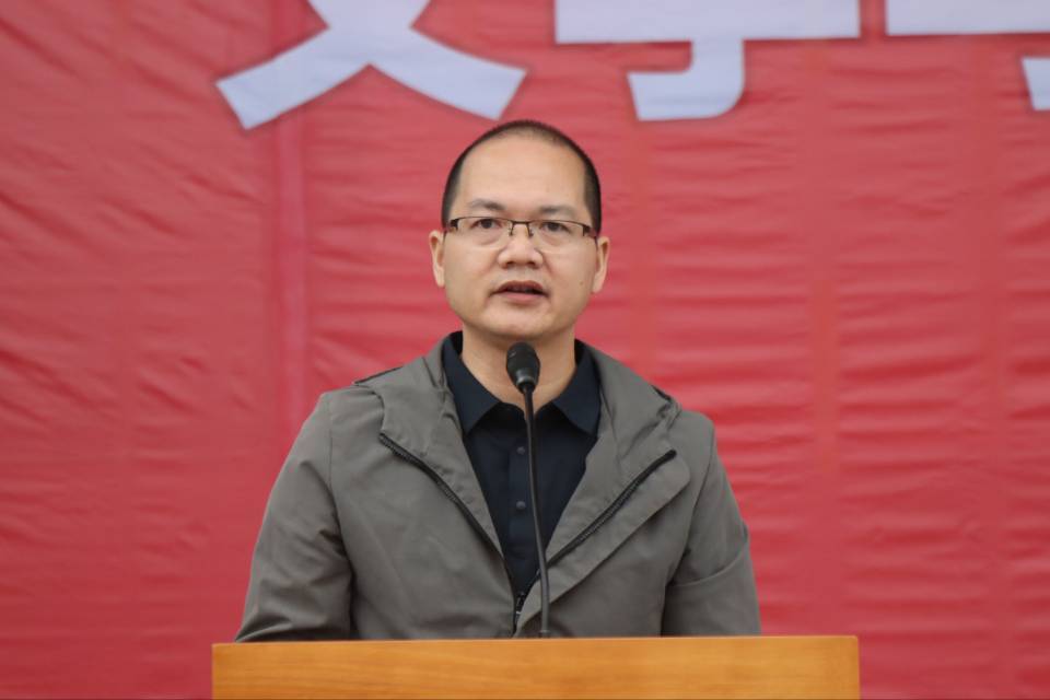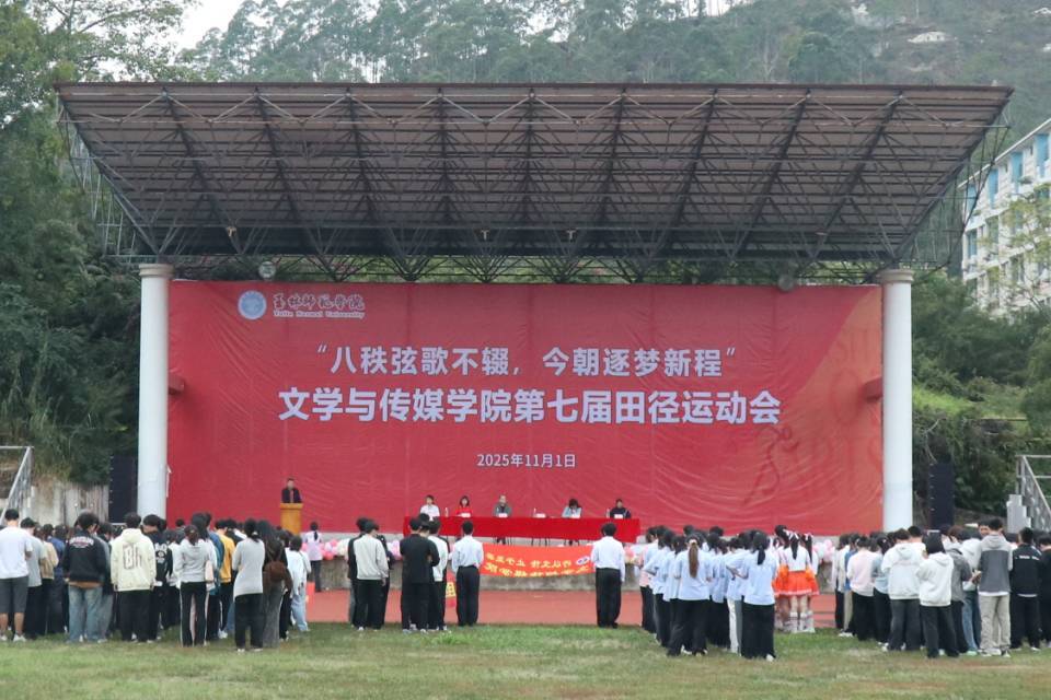 本站讯 11月1日上午,文学与传媒学院在东校区大田径场举行第七届田径运动会开幕式。我院党委书记冯健秋,院长肖国栋出席开幕式,学院全体教职工及全体学生参与。本次开幕式由党委副书记邓荫金主持。