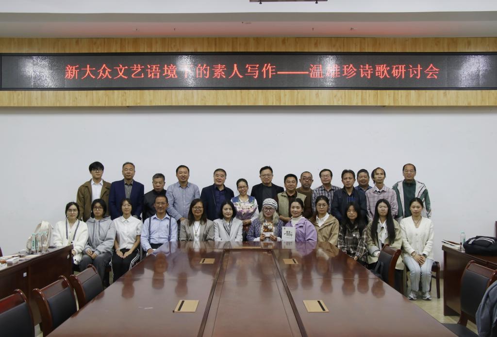 本站讯 11月26日下午,天门关文学活动第一期:“新大众文艺语境下的素人写作——温雄珍诗歌研讨会”于东校区至善楼309会议室开展,素人写作者温雄珍、玉林市作家协会成员及我院领导老师齐聚一堂,共同探讨温雄珍诗歌的魅力与深度。