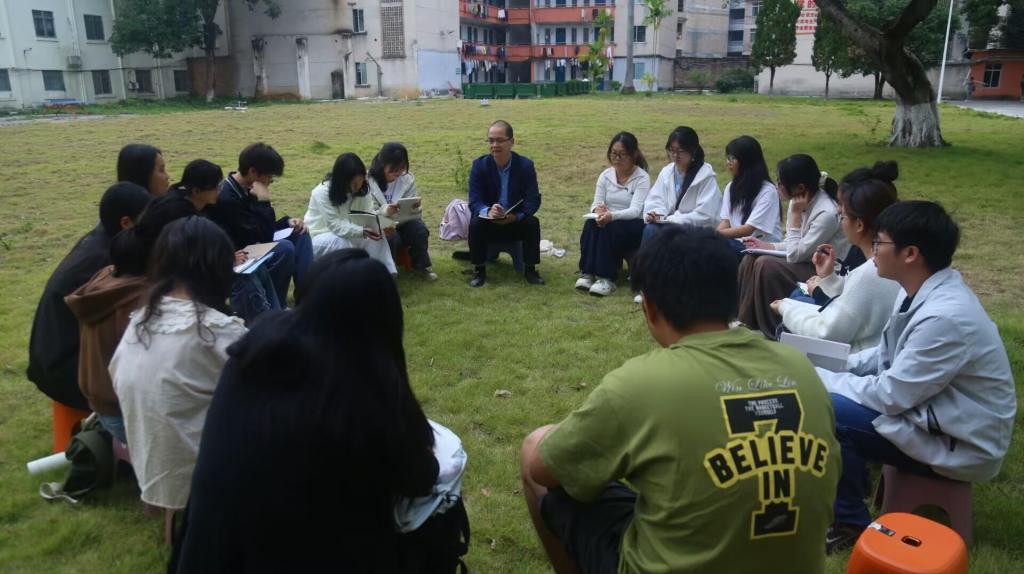 本站讯 为更好地了解学院学生在学习、生活等各方面的诉求,进一步优化学院的管理与服务工作,12月12日下午,文学与传媒学院在西校区五栋宿舍楼旁的草地上开展“板凳有约—我与学院领导面对面”座谈交流活动。我院党委书记冯健秋,辅导员田超强以及25级各班班长、团支书参加活动。