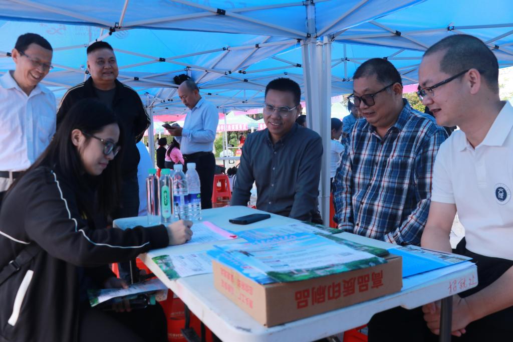 走访过程中,学院领导与到场的求职毕业生面对面交流,详细查看学生求职材料和个人简历,细致了解毕业生就业意向、职业规划及求职困惑,为他们提供针对性就业指导和择业建议,并鼓励他们要积极与招聘单位交流,主动把握就业机遇,积极应聘。 (摄影/刘子贤 赖小静)