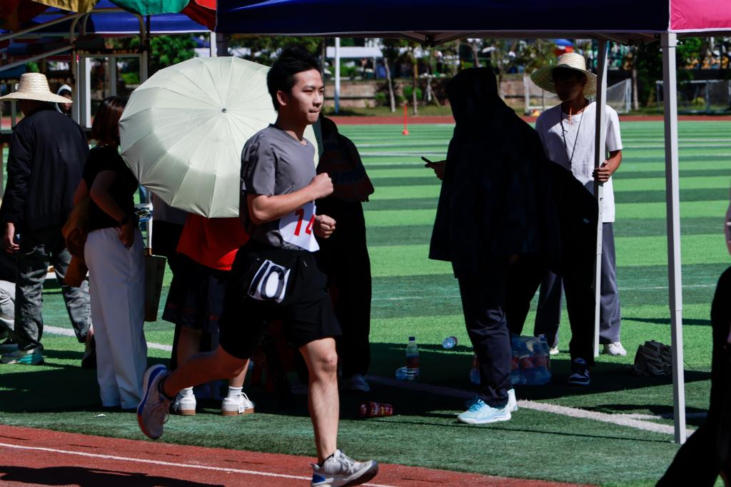 在比赛中,我院选手刘培在赛道上奋力拼搏,咬牙坚持,全力以赴冲过终点线,顺利完成比赛,展现出良好的体育风采与运动精神。