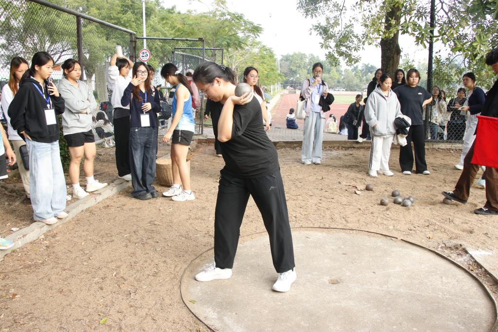 本站讯 11月15日上午,我校第二十六届田径运动会女子甲组铅球决赛在东校区小田径场顺利开赛。本次比赛采用预决赛一体化模式,27名选手经预赛角逐后,八强晋级最终对决。我院原计划参赛的韦嘉慧因故未能到场,莫惠媚独自出战,最终勇夺冠军。
