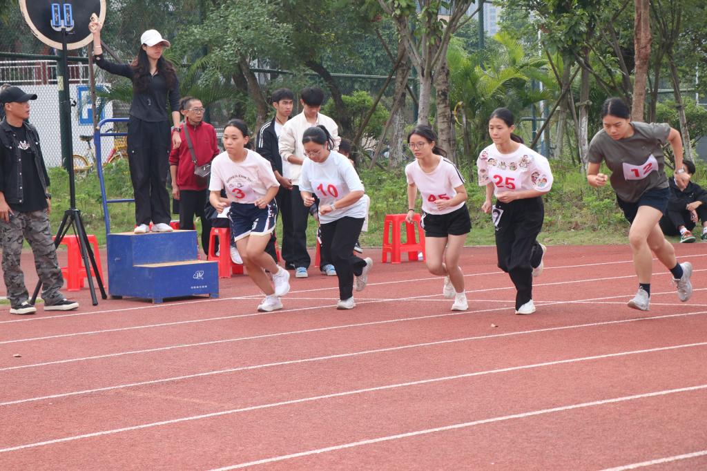 赛前,蓝彩菲为接下来的比赛进行最后的热身准备。随着裁判的一声枪响,蓝彩菲冲出起跑线,在跑道上奋力拼搏。比赛过程中,运动员们逐渐拉开差距。蓝彩菲同学脚步不停,奋力向前追赶差距。在不懈的拼搏与努力下,蓝彩菲顺利到达终点。