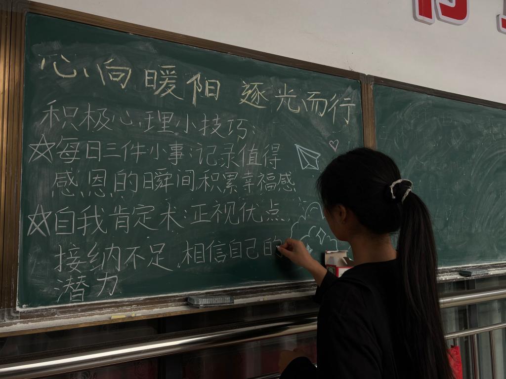 大学生心理健康是成长成才的重要基石,关乎个人发展与校园和谐。活动中,同学们以黑板为载体,结合自身感悟与创意灵感,用鲜活的色彩、生动的文字诠释对积极心态的理解,既系统普及了心理健康知识,又传递了直面困境、逐光成长的正能量。此次活动不仅为同学们提供了展示才华的平台,更引导大家学会自我关怀、主动调节情绪,以阳光心态拥抱校园生活的每一段旅程。