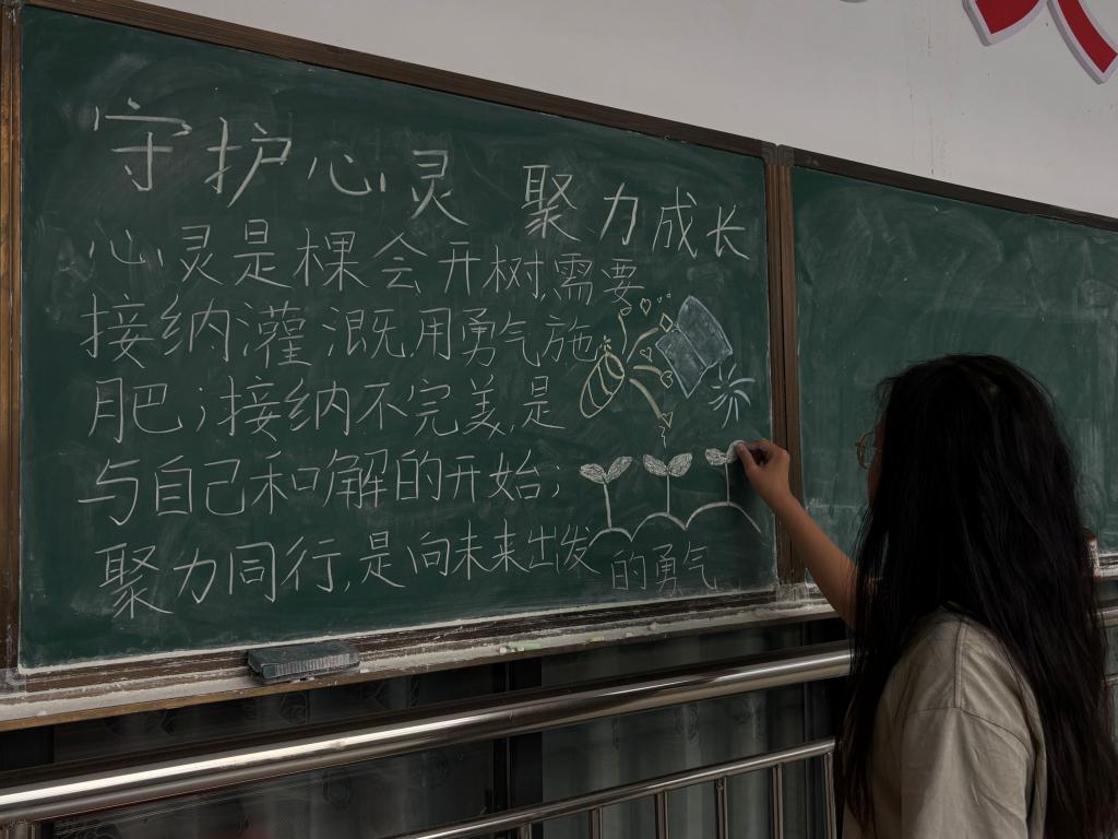 本站讯 12月1日,文学与传媒学院在东校区至善楼二楼师范生专业技能训练点开展以“守护心灵,聚力成长”为主题的黑板报心理宣传活动。本次活动旨在强化学生心理健康自我保护意识,提升心理调适能力,推动形成关注心灵、互助成长的校园氛围。