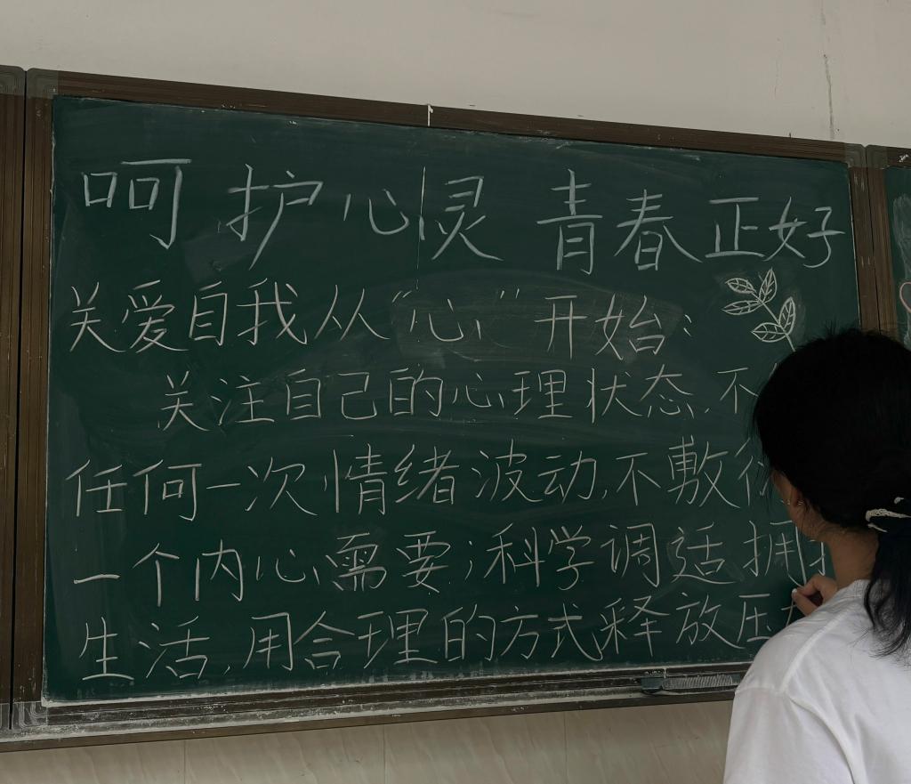 青春的美好,离不开心灵的悉心守护。活动现场,同学们紧扣主题创意构思,将心理关怀的方法、情绪疏导的技巧转化为鲜活的图文内容,用真挚的文字、细腻的画笔传递“呵护心灵”的重要性,引导师生正视心理需求、用心关照自我。此次黑板报宣传活动,以贴近青春的表达形式让心理健康知识入脑入心,帮助文传学子在呵护心灵中感受青春的美好,以积极心态拥抱属于自己的青春旅程。