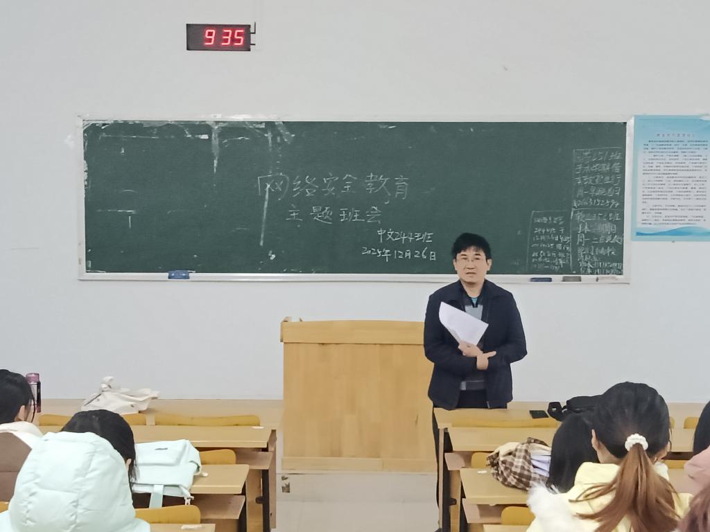 本站讯 12月20日至30日,文学与传媒学院各班级于我校东校区至善楼召开“践行网络文明,坚守法纪底线”网络文明教育主题班会。此次班会由班主任、辅导员主持,各班级全体同学参与。