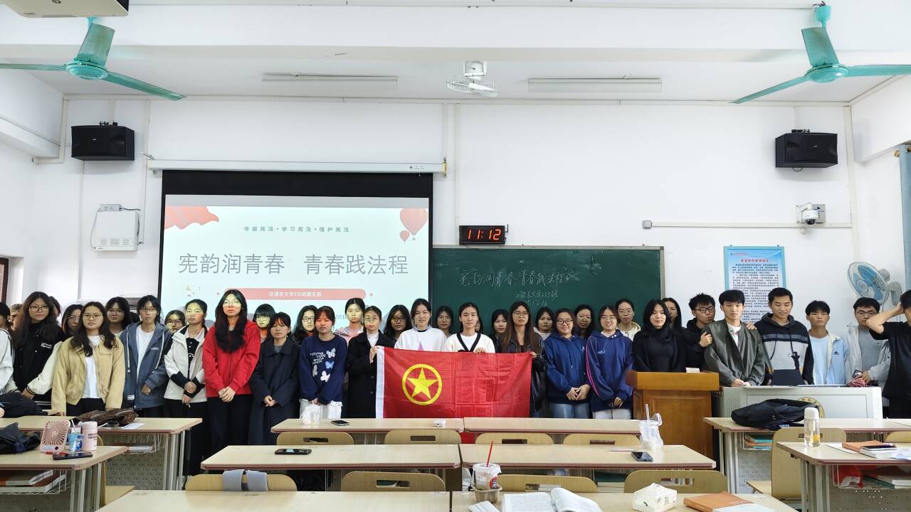 本站讯 为深入学习和贯彻习近平总书记法治思想,大力弘扬宪法精神,12月18日至12月21日,文学与传媒学院各班级及社团开展“宪韵润青春,青春践法程”主题团日活动。各班团支书主持活动,班级全体学生参加。